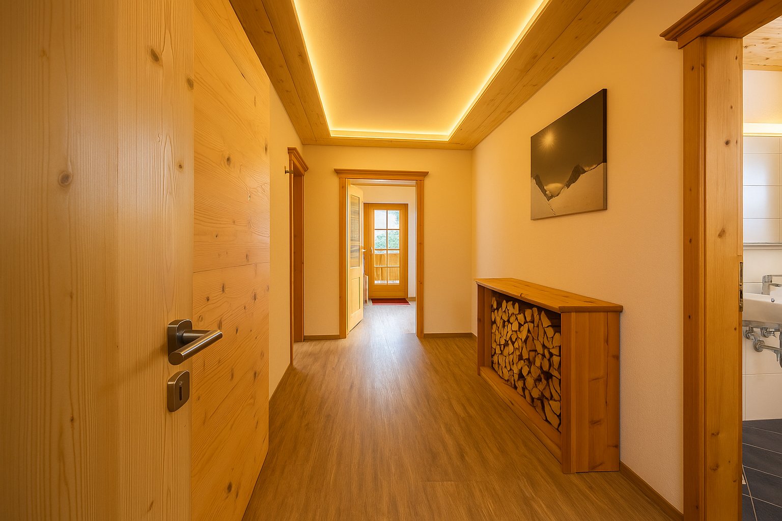 Entspannen auf der Sonnenterrasse, ein Glas Wein auf dem Sofa nach einem aufregenden Tag und erholsame Nächte in den zwei nach Zirbe duftenden Schlafzimmern.