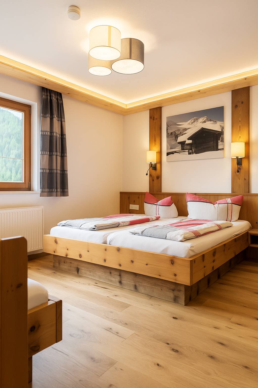 - 1 Dreibettzimmer aus Zirbenholz mit Balkon, Bergblick und Flat TV